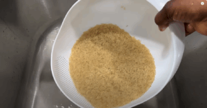 1. Rinse your rice in cold water until the water runs clear. This removes extra starch so the rice doesn’t stick together.